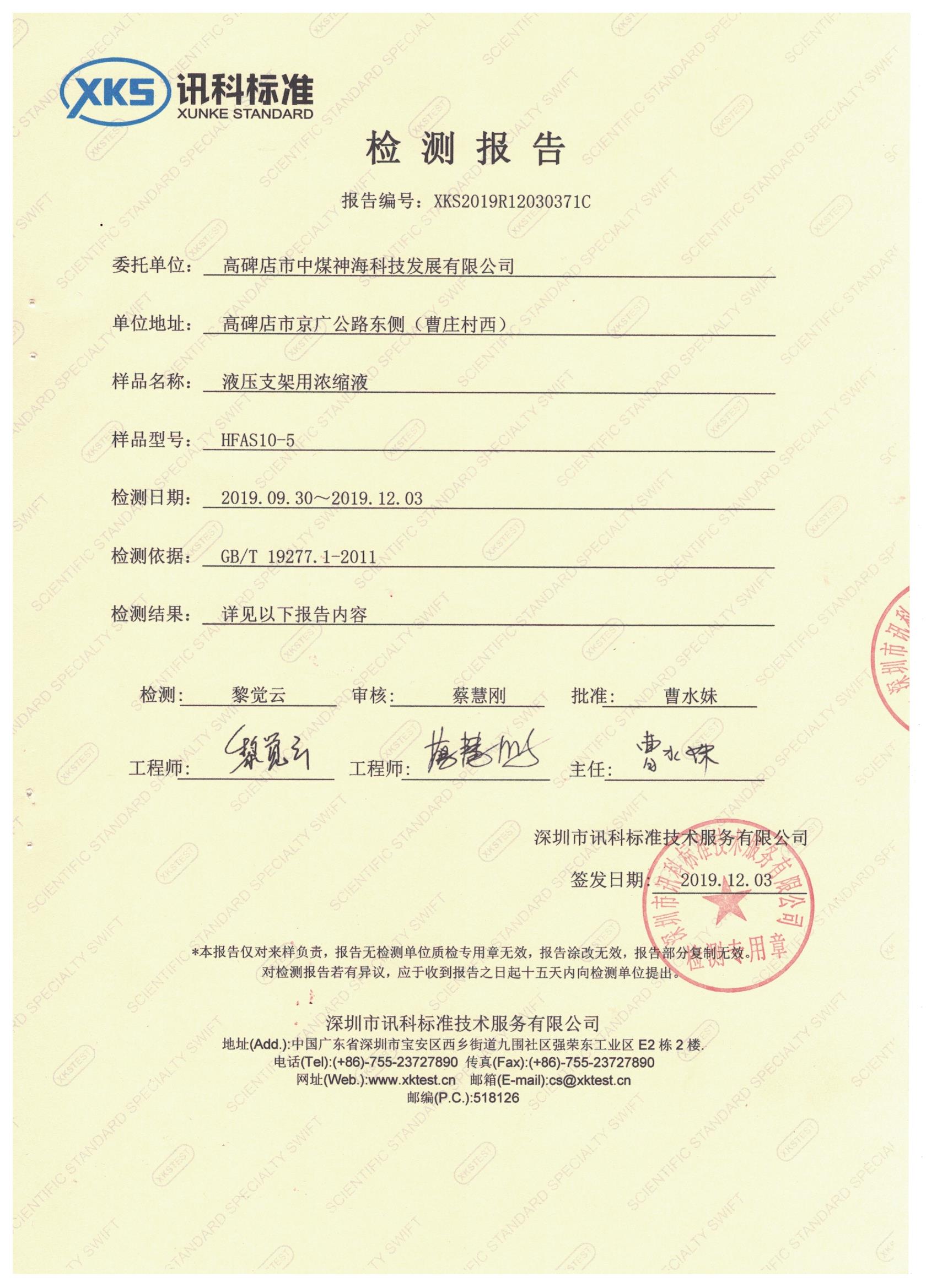 隨著煤礦綜采技術(shù)及裝備日趨現(xiàn)代化,作為綜采液壓支架動(dòng)力傳動(dòng)介質(zhì)的液壓支架用液的需求也越來越大,由于液壓支架控制閥結(jié)構(gòu)復(fù)雜,過濾精度高,因此對(duì)用液的性能要求也越來越高,我公司研發(fā)的“吉K”牌液壓支架用濃縮液、乳化油、防凍液采用全新的配方體系,具有優(yōu)異的潔凈性、極佳的潤滑、防銹、防腐性,各項(xiàng)性能均超過國內(nèi)外同類產(chǎn)品。取得安標(biāo)證書,并通過第三方專業(yè)檢測(cè)機(jī)構(gòu)的檢測(cè)。
