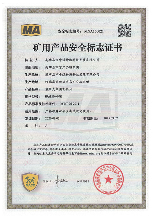 河北中煤神海科技發(fā)展有限公司難燃液壓液產(chǎn)品上線