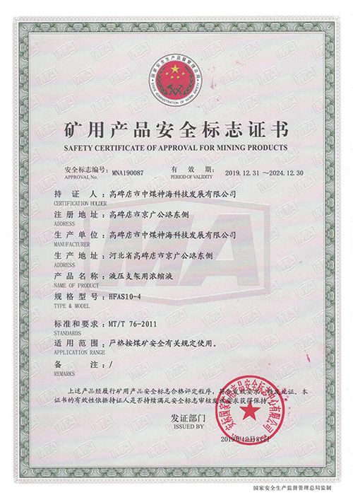河北中煤神??萍及l(fā)展有限公司難燃液壓液產(chǎn)品上線