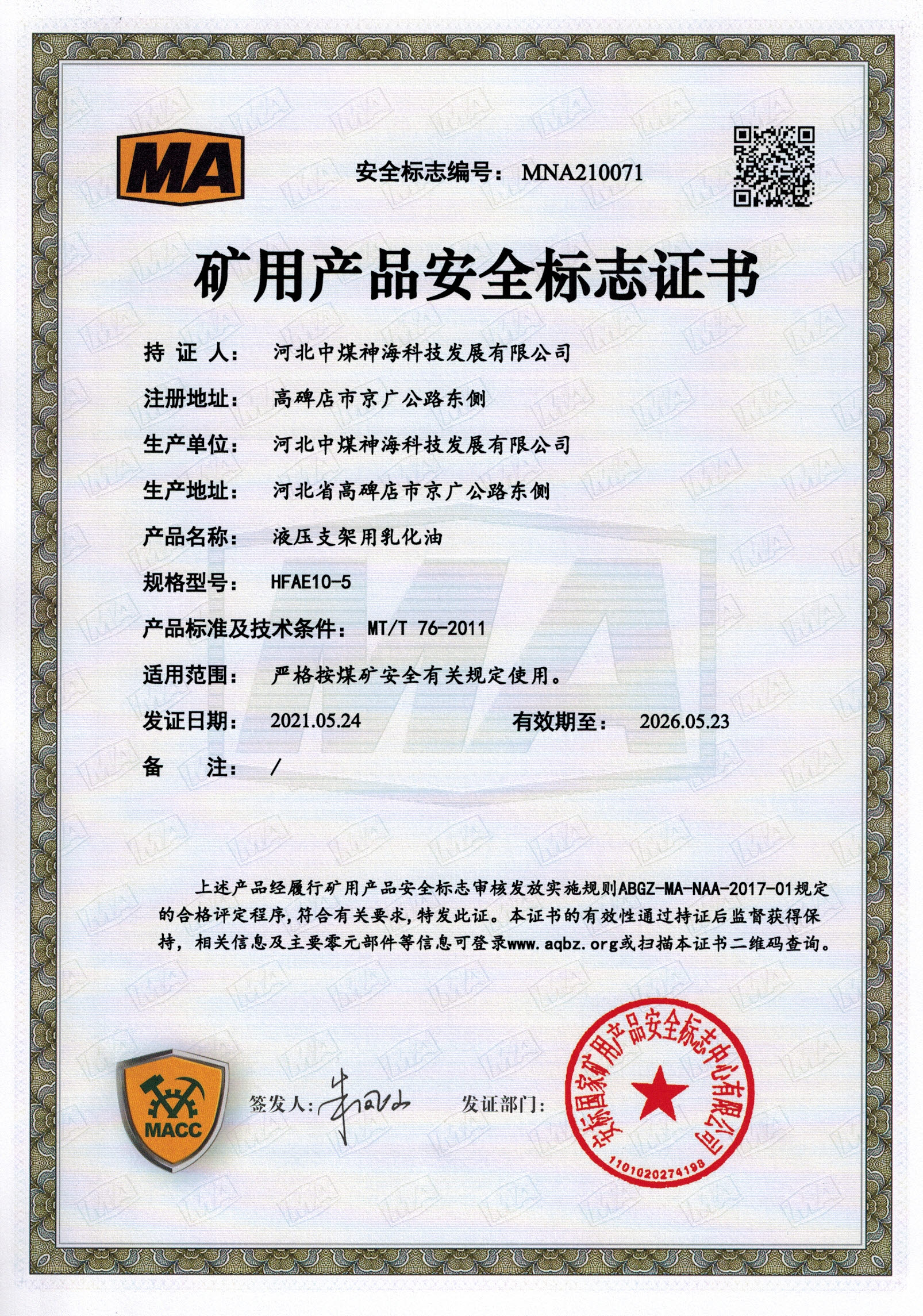 河北中煤神海科技發(fā)展有限公司難燃液壓液產(chǎn)品上線