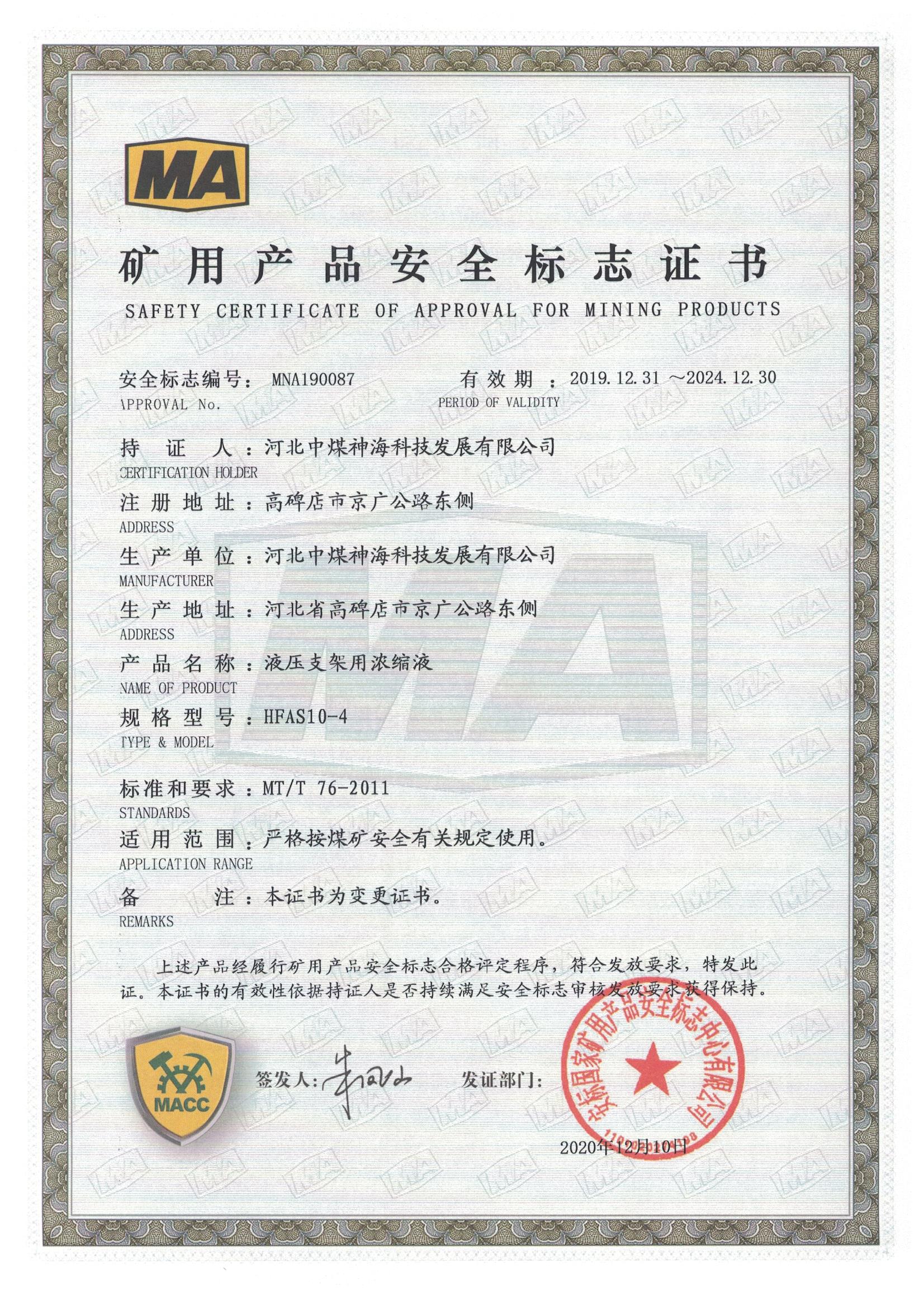 河北中煤神海科技發(fā)展有限公司難燃液壓液產(chǎn)品上線