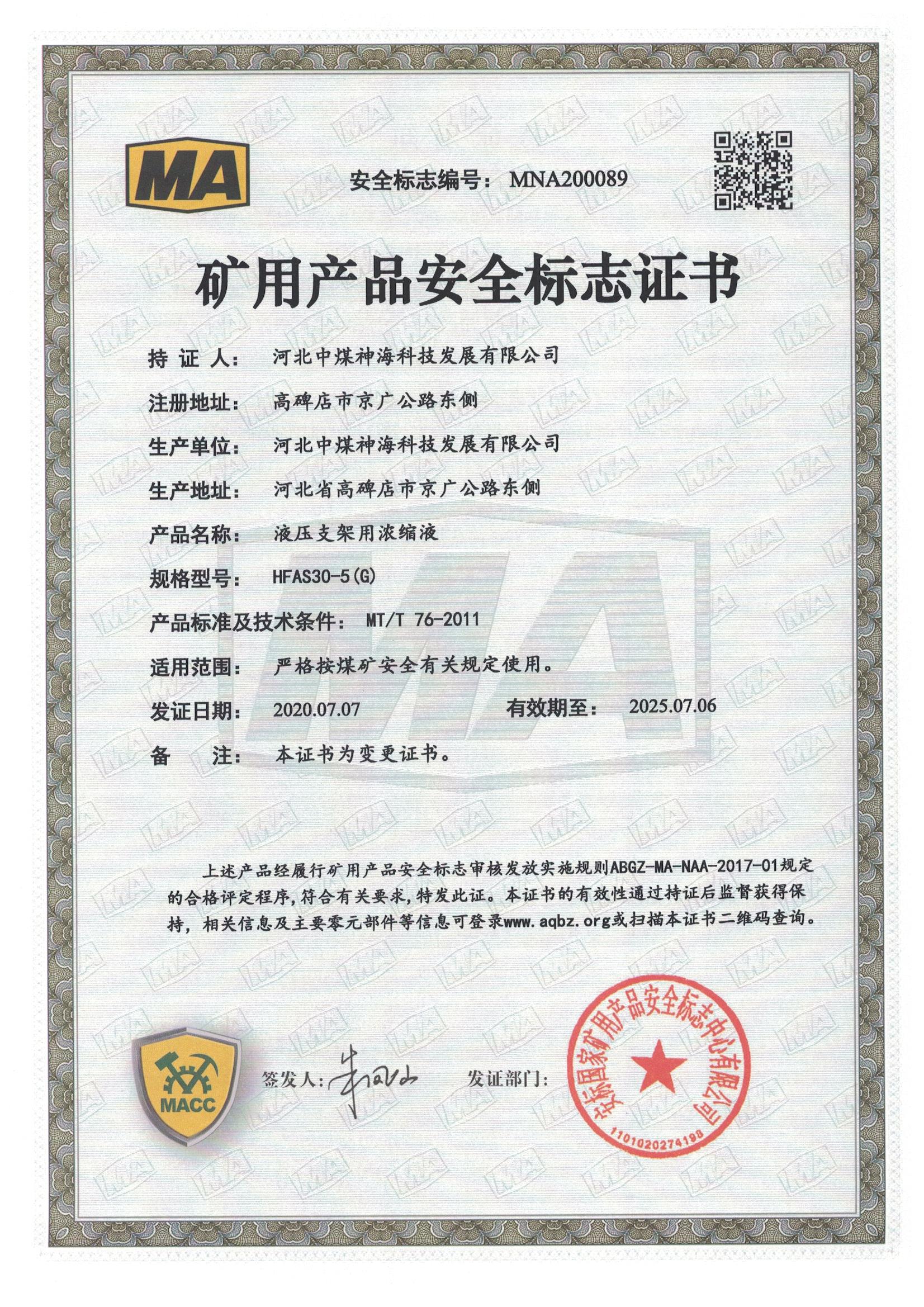 河北中煤神??萍及l(fā)展有限公司難燃液壓液產(chǎn)品上線