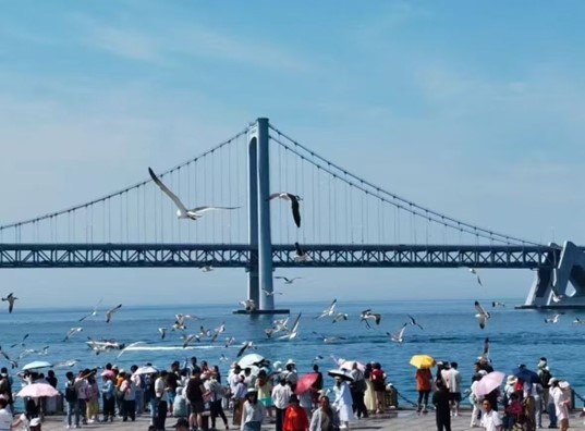 首站抵達(dá)星海廣場(chǎng),遼闊的廣場(chǎng)上,海風(fēng)輕拂而過(guò),帶著大海獨(dú)有的清新氣息。大家或與家人并肩漫步,靜靜欣賞廣場(chǎng)的壯麗景致,任時(shí)光緩緩流淌;或三五成群駐足,舉起相機(jī)定格下彼此的笑容與眼前的美景。